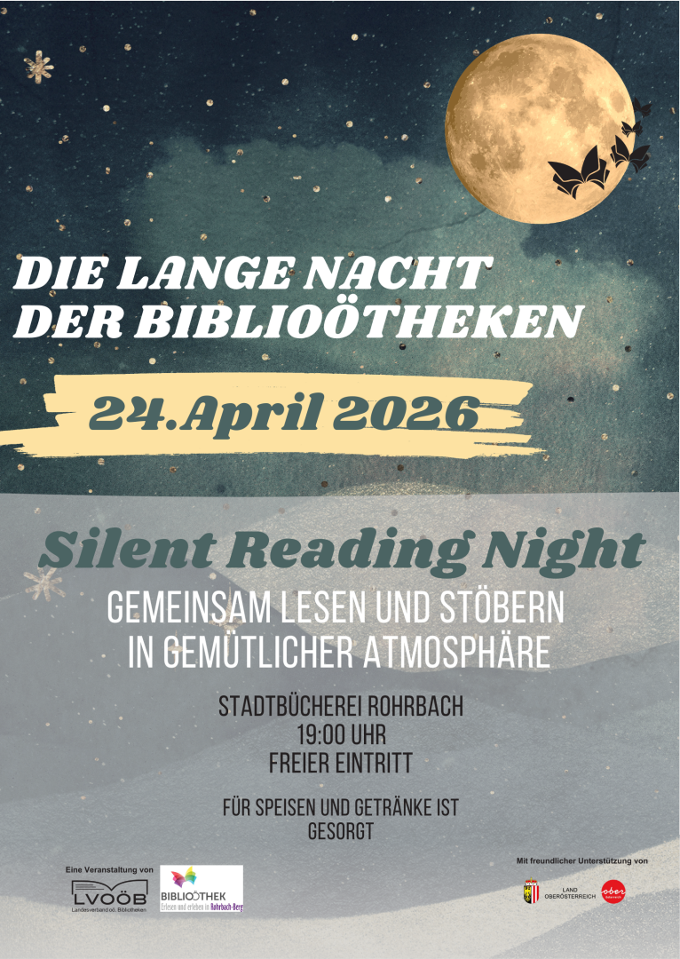 Komm vorbei, such dir ein Buch und einen gemütlichen Platz und lies mit uns gemeinsam – ganz leise. In den Pausen findest du Gelegenheit, dich mit anderen über das Gelesene auszutauschen. Für Getränke und Snacks in den Pausen ist gesorgt.