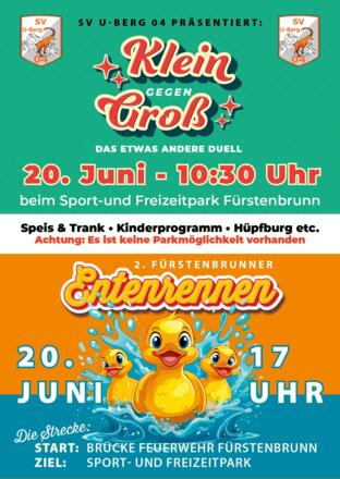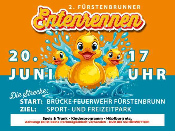 Danach gibs das 2. Fürstenbrunner Entenrennen, um 17:00 Uhr ist der Start bei der Brücke bei der Fürstenbrunner Feuerwehr. Hier werden Spenden für einen guten Zweck gesammelt. Ein Spaß für Jung und Alt und natürlich gibts auch heuer wieder einen Preis für die kreativste Ente.