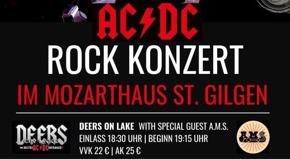 AC/DC Rock Konzert mit Deers on Lake und Special Guest A.M.S. im Mozarthaus in St. Gilgen.