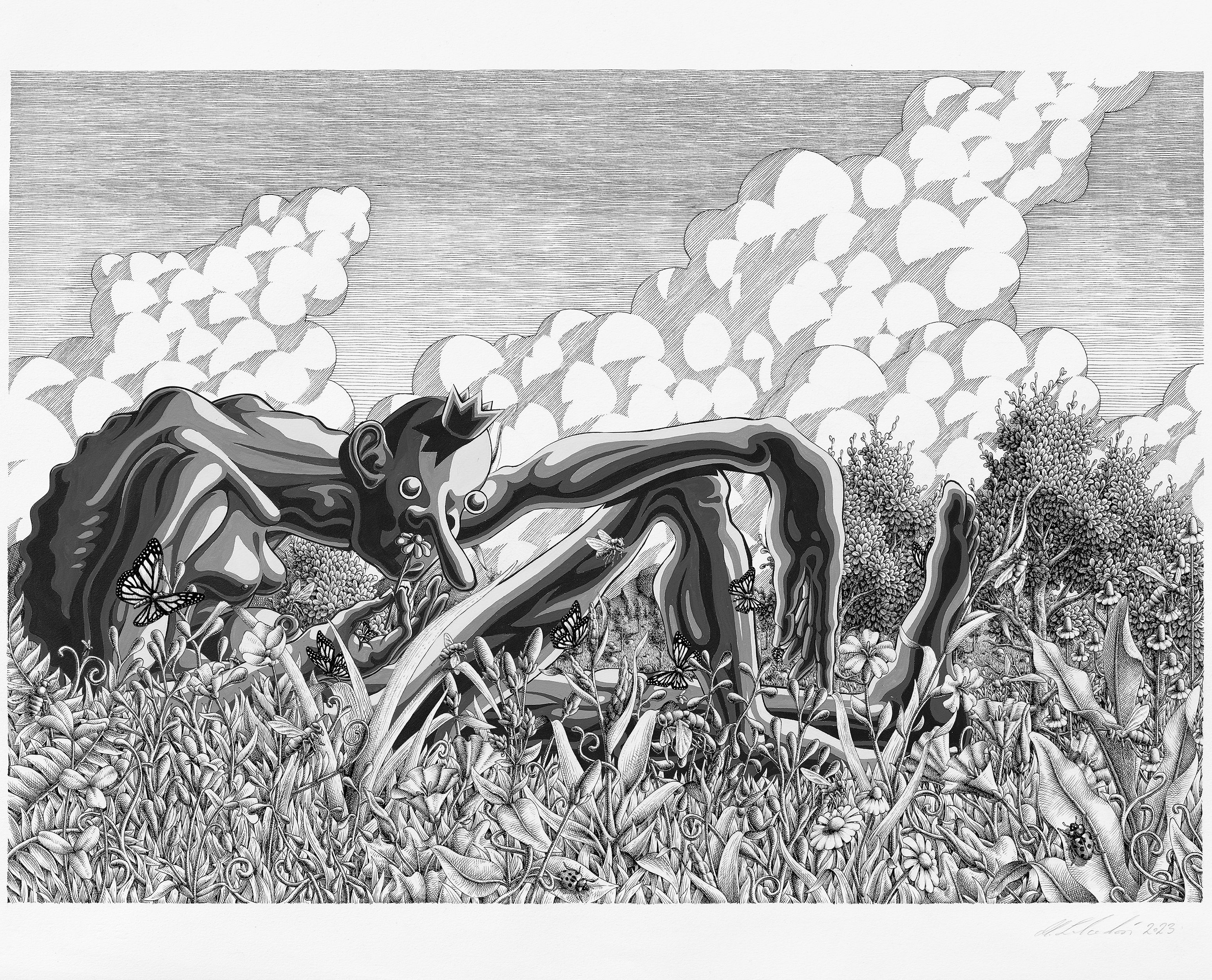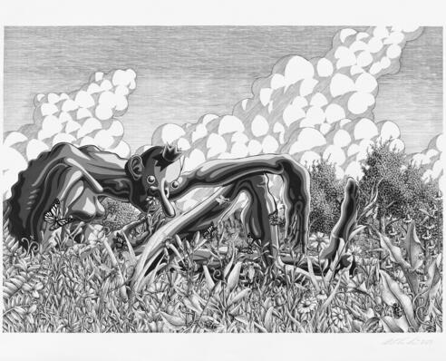 bizarren Landschaftszeichnung gezeigt. An dieser Zeichnung arbeitete der Künstler beinahe sechs Jahre,