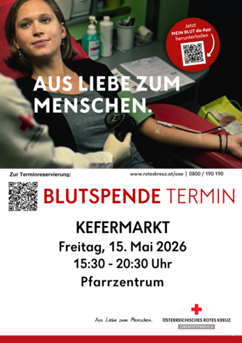 Für Fragen steht Ihnen die Blutzentrale Linz unter der kostenlosen Blutspende‑Hotline: 0800 / 190 190 bzw. per E-Mail spm@o.roteskreuz.at zur Verfügung.  Weitere Blutspendetermine können Sie in Tageszeitungen sowie im Internet unter www.roteskreuz.at/ooe erfahren.