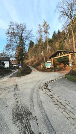 Deine Tour beginnt am Parkplatz des Garmischer Friedhofs. Du läufst in Richtung Westen los, vorbei an der "Bayernhalle" direkt in den ersten kurzen Anstieg. Nach 200 Metern biegst du rechts auf den Schotterweg ab, von nun an hast du eine 400 Meter lange Strecke mit angenehmer Steigung vor dir.