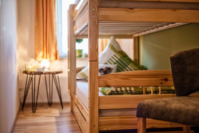 Unser familiär geführtes Ferienhaus für 4-7 Personen liegt im Herzen der historischen Altstadt Kelheim und führt direkt zu den schönsten Ausflugszielen und Sehenswürdigkeiten der Region. In unmittelbarer Nähe befinden sich zahlreiche Geschäfte, Restaurants und nette Cafe`s. Wir bieten Ihnen gemütliche und mit viel Liebe zum Detail, heimisch eingerichte Zimmer mit einer großen voll ausgestatteten Wohnküche, mit Geschirrspülmaschine, Microwelle, Backofen sowie einer Kaffeemaschine und Toaster.Eine Waschmaschine und ein elektrischer Trockner befindet sich in einem seperaten Waschraum. In jedem Zimmer Ihres Ferienhauses befindet sich ein Fernsehgerät mit Sat- und Internetanschluss, einen DVD Player und eine Bose Sound System Radio Anlage finden Sie in der Wohnküche. 2 Parkplätze und eine Fahrradunterstellmöglichkeit direkt vor dem Haus, weitere Parkplätze sind nur 100 m entfernt. Preis pro Person/ Nacht ab EUR 39,00 Kinder von 6 -14 Jahren EUR 19,00 Hunde (auf Anfrage) EUR 9,00 Preise zuzügl. Endreinigung Als komplettes Ferienhaus (ca. 150m²) buchen: 2 DZ, 1 EZ, 1 Hochbettzimmer und Wohnküche Ab 1 Woche bis 7 Personen Sonderpreis auf Anfrage! Die Restzahlung kann aus folgenen Arten gewählt werden: - Keine Anzahlung nötig! Sie können Bar bei Anreise in der Unterkunft bezahlen.