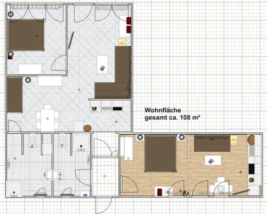 Unser Bungalow mit 2 abgeschlossenen Wohneinheiten kann komplett als Ferienhaus gemietet werden (außer den Garagen).