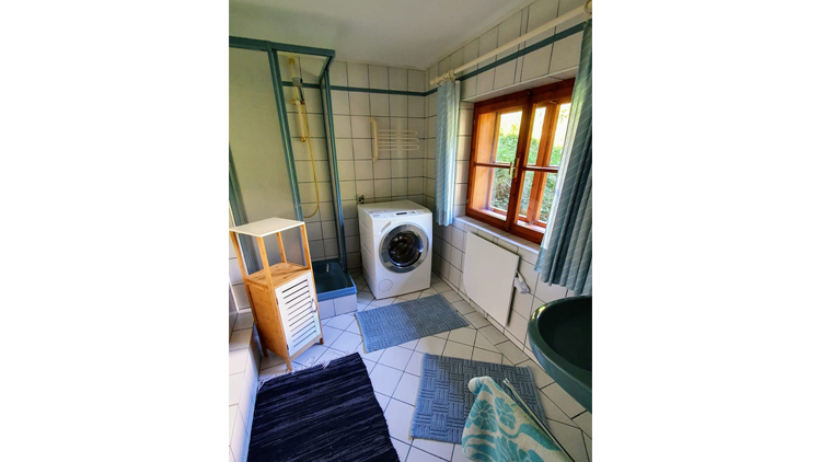 Bad mit Duschkabine, Waschmaschine & Haarföhn