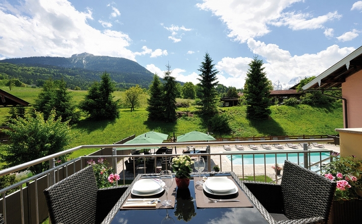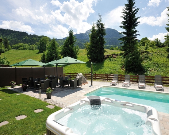 Der Award-Winner 2015 & 2016 in Berchtesgaden! Vom DTV höchstzertifizierte 5-Sterne Appartementanlage Süddeutschlands. Idylle pur mit atemberaubendem Bergblick. Die Ferienwohnungen sind mit Südterrasse oder Balkon ausgestattet. In der Anlage steht Ihnen eine hochwertig ausgestattete Wohlfühloase mit Sauna und weiteren Vorzügen wie Kosmetik- und Massageanwendungen zur Verfügung. Des Weiteren ruhige Liegewiese mit beheiztem Pool, Pool-Restaurant, Whirlpool, Kinderspielplatz u.v.m. Ihre Wanderausflüge begleiten wir auf Anfrage gerne. Feinste Kulinarik, Frühstück und/oder 3-Gänge Abendmenü täglich buchbar. Wir bieten Ihnen einen kostenlosen Transfer vom Bahnhof Berchtesgaden sowie vom Bahnhof und Airport Salzburg für Ihre An- und Abreise. Luxus der ganz persönlichen Art: ab 3 Nächte - Frühstück ab 17,50 €, HP-Aufschlag 39 €. Zudem vermieten wir auch ein Familienzimmer v. 2 - 4 Personen, Bad mit Badewanne/DU/WC und Balkon ab 90 € p. P. inkl. Frühstück.
