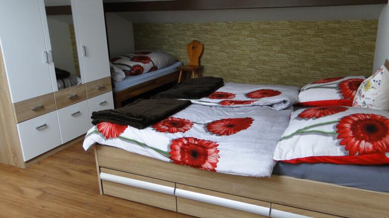 3 Betten (+ Schlafcouch), 65 m², 1. OG, 1 Schlafraum, Wohnküche, Dusche/WC, Gartenmitbenutzung