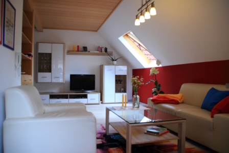 Wir und unsere Katze heißen Sie im Weinort Bürgstadt herzlich willkommen. Unsere zentral liegende, neu eingerichtete, helle Ferienwohnung mit Balkon liegt im Dachgeschoß.