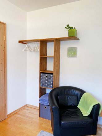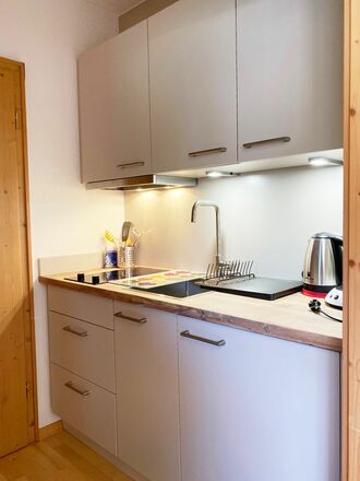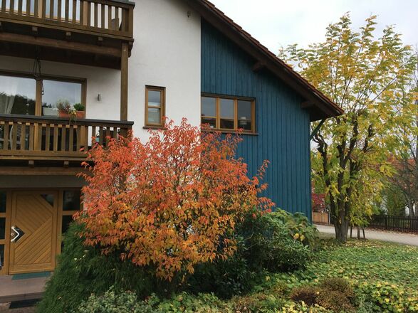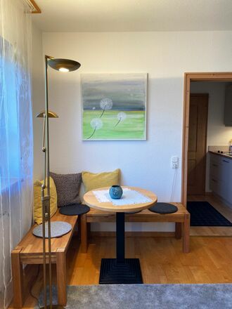 Unser kleine Ferienwohnung in Waldrandnähe, unweit des Fränkischen Rotwein Wanderwegs, ist liebevoll eingerichtet. Sie befindet sich im Erdgeschoss und ist für 1 - 2 Personen geeignet. Das 20 qm große Appartement umfasst ein Schlafzimmer mit Doppelbett, kleine Küchenzeile und Essecke, ein Bad mit Du/WC und Föhn, LED-TV, kostenloses W-Lan. Bettwäsche und Handtücher stehen Ihnen zur Verfügung, Brötchenservice auf Wunsch.