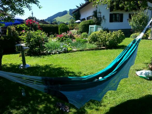 Unsere gemütlich eingerichtete Nichtraucher-Ferienwohnung liegt südseitig und bietet einen freien Blick zu den Bergen. Das Wohn/Schlafraum mit Küchenzeile ist gemütlich eingerichtet und mit Kabel-TV und WLan ausgestattet. Dazu ein großes Badezimmer (mit Dusche und Badewanne). Von Wiesen umgeben werden Sie in dieser absolut ruhigen Lage auf der Südterrasse oder im schönen Garten die gewünschte Erholung finden. Langläufer können direkt vor dem Haus in die Loipe steigen. Ausgangspunkt von schönen Wander- und Radwegen. In weniger als 5 Gehminuten erreichen Sie das Ortszentrum mit allen Geschäften, den Bahnhof, Bushaltestellen (auch für den kostenlosen Skibus), Kurpark, Eisstadion, Kirchen sowie Fachklinik Allgäu. Auf Wunsch geführte Ski-, MTB- oder Nordic-Walking-Touren.