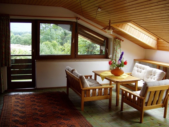 Lage: Ortsteil Giebing, am Waldrand mit freiem Bergblick, an der Chiemgaubahn (Schienenbus) zwischen Chiemgauer Alpen (ca. 5km) und Chiemsee (ca. 7km). Entfernung zum Ortszentrum Bernau am Chiemsee ca. 5 Kilometer. Die Ferienwohnung für 2 Personen mit großem Südbalkon befindet sich im Obergeschoss eines allein stehenden Hauses. Im Garten steht ein überdachter Sitzplatz mit Grillmöglichkeit für Sie zur Verfügung. Direkt vom Haus aus können Sie auf idyllischen Wanderwegen über's Priental bis nach Aschau im Chiemgau oder zum Bärnsee wandern. Für Ausflüge in die Landeshauptstädte nach München und Salzburg existiert die Bedarfshaltestelle der Chiemgau-Bahn (Vachendorf). Ausstattung: Gesamte Wohnfläche ca. 55m2, 1 Wohn-/Schlafraum mit Sitzgruppe und Doppelliege. Sep. Wohnküche mit Eckbank, E-Herd und Kühlschrank mit Frostfach. Bad mit WC und Badewanne. Kabel-TV, Radio, Bettwäsche und Handtücher vorhanden. Keine Haustiere erwünscht!