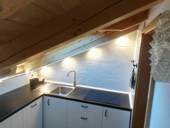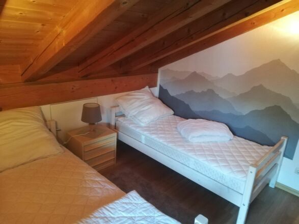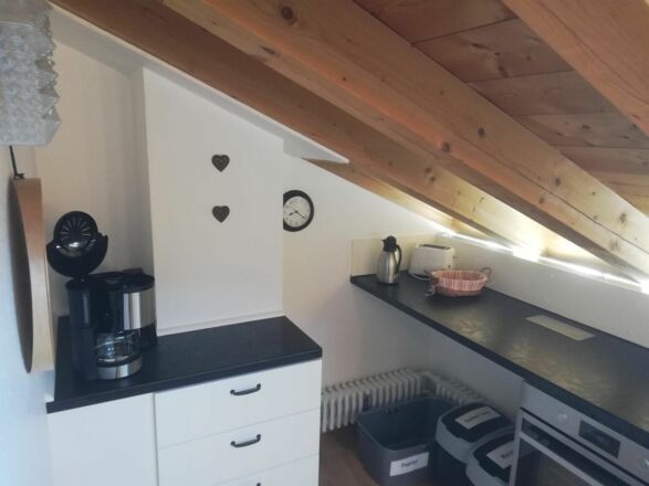 Unsere Ferienwohnung umfasst mit ca. 75 m² das komplette Dachgeschoss des 1986 fertig gestellten Hauses am Edelweißweg 9. Während Sie Ihr Frühstück in der Morgensonne auf dem südöstlich gelegenen Balkon mit Blick auf die Zugspitze und die Waxensteine genießen, erwartet Sie zum Dämmerschoppen auf dem nordwestlich gelegenen Balkon der Kramer in der Abendsonne. Drei Schlafräume bieten 5 Personen Schlafgelegenheit. Der Wohnraum gibt Ihnen die Möglichkeit, auch in größerer Runde gemeinsam zu essen oder zu spielen oder sich ganz einfach mit einem spannenden Buch ins Sofa zurück zu ziehen. Komplettiert wird die Wohnung durch eine vollständig eingerichtete Küche, Bad mit Wanne und Dusche, Gäste – WC und Abstellraum. Und damit es während des Urlaubs auch Ihrem Auto gut geht, steht Ihnen eine Garage zur Verfügung. P.S. Im Keller befindet sich eine Waschmaschine, die Sie jederzeit nutzen können. Weitere Informationen finden Sie auch auf unserer Homepage unter www.fewo-lahrmann.de