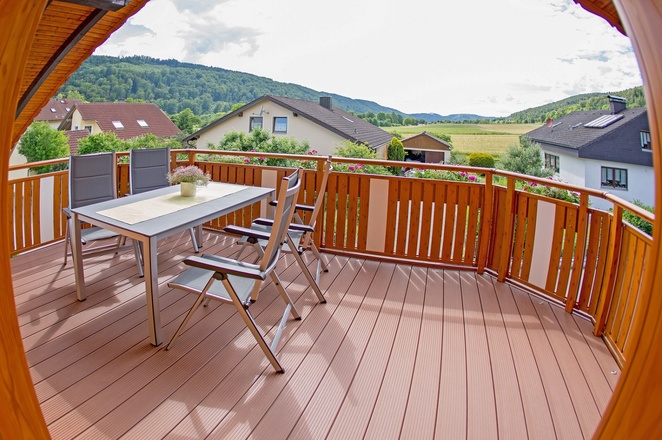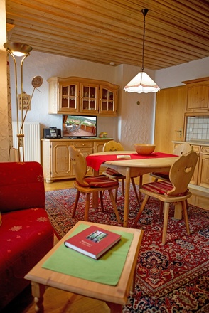 Sehr komfortabel eingerichtete FeWos in sonniger Tallage am Ortsrand. Gut geeignet für Familien mit Kindern, großer Balkon mit Sitzgelegenheit, Grillmöglichkeit, Zentralheizung, im Winter vermietbar, Nichtraucher. Auch Ü/F möglich, Badesee, Spielplatz und großes Freizeitangebot in unmittelbarer Nähe. Brötchen-Service, kostenloses W-Lan, Tresor.