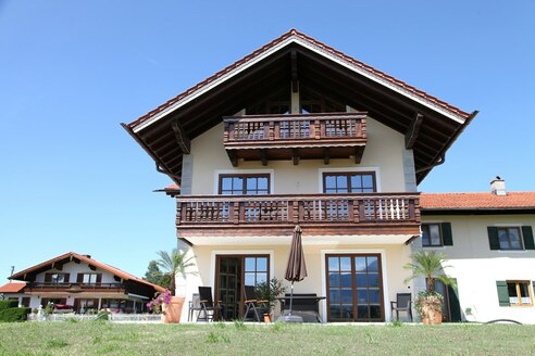 Ferien bei Familie Lindlacher - In unseren geräumigen Fewo - alle mit freiem Blick auf die Chiemgauer Berge, die geschmackvoll und mit Liebe zum Detail eingerichtet sind, fühlen sich unsere Gäste sehr wohl. Durch unsere zentrale Alleinlage finden Sie Ruhe und Entspannung. Kleine Gäste finden auf unserem Spielplatz mit Schaukel, Rutschen, Sandkasten, Tischtennisplatte, Spielhaus und nicht zuletzt durch unseren Streichelzoo schnell Spielgefährten. Das kostenlose Ponyreiten erfreut nicht nur Kinderherzen. Kostenlose Leihfahrräder stehen Ihnen zur Verfügung, ein Parkplatz am Haus und Fahrradgarage ist für Sie selbstverständlich reserviert. Auf der Sonnenterrasse können Sie Gartenstühle, Liegen und Sonnenschirme kostenlos nutzen.