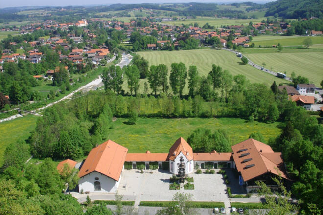 Die Festhalle befindet sich im Ortsteil Hohenaschau nördlich der Burg.