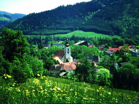 Die leicht abschüssige, blaue Florianistub´n Runde startet der Promenade entlang. Sie eignet sich zum Trainieren und Durchatmen. Nach dem Start bei Wagau über ein Brückerl die Alm queren, dann entlang des Flusses bis zur Flößerstrasse, dort geht es wieder über die Alm, am Sportplatz vorbei, mit kurzem Anstieg auf den Schlossberg erreicht man die Kirche und den Ausgangspunkt.