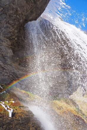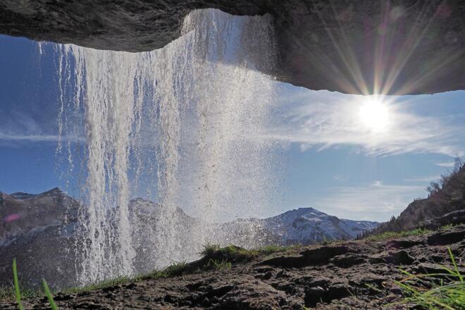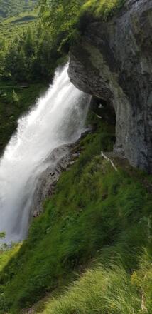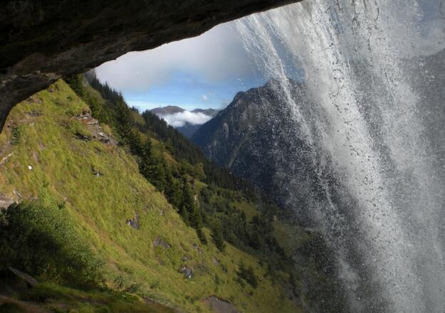 Der Weg verläuft immer höher steigend, bis man eine Weggabelung erreicht. Ab hier geht man in Richtung Walcher Grundalm. Man quert den Walcherbach über einen Holzsteg. Nun ist es nicht mehr weit, bis man die Walchergrundalm auf 1.580 m Seehöhe erreicht. Hinter der Grundalm steigt der Weg weiter an und führt über freie Hänge Richtung Westen zur Walcher Hochalm auf 1.853 m Seehöhe. Nach der Hochalm folgt das Highlight dieser Wanderung. Der Walcherbach ergießt sich in einem tosenden Wasserfall ins Tal und der Weg führt direkt hinter diesem Wasserfall hindurch. Nach einem wundervollen Foto-Spot folgt der Wasserfallweg wieder Richtung Tal zurück.