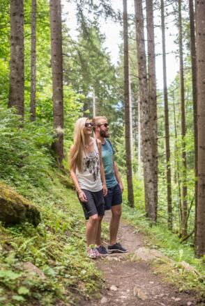 Nach dem Liegestuhl bei der Nummer 8 kann man nochmal nach rechts abzweigen und Wassertreten gehen. Danach geht es weiter zum Bafißweg welcher sich bei der Erlebniswelt Holz "Mühlauersäge" befindet und wieder runter ins Zentrum.