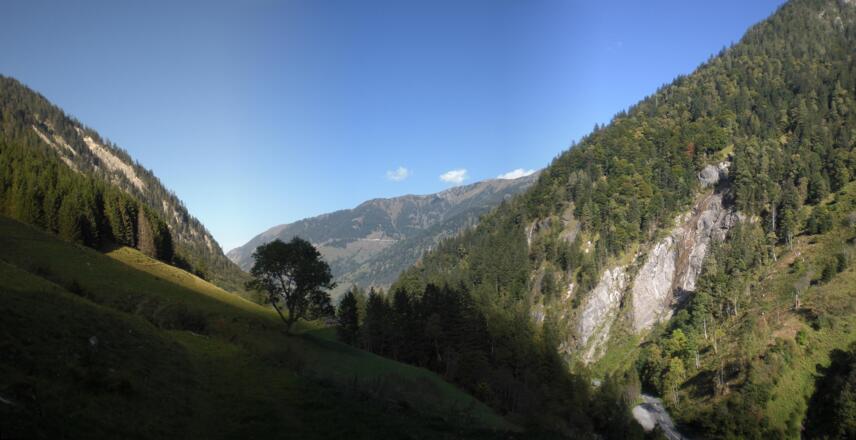 Diese Wanderung startet bei der Tourist Info in Fusch. Man folgt der Beschilder "Fuscher Höhenweg" oder "Nepomuk's Weg der Sinne" bis zur Erlebniswelt Holz "Mühlauersäge". Von dort aus geht es rein in den Wald und ein Stückchen bergauf.