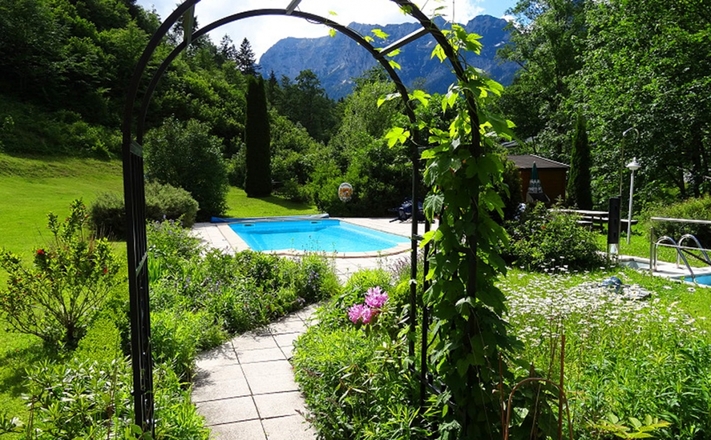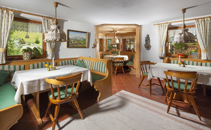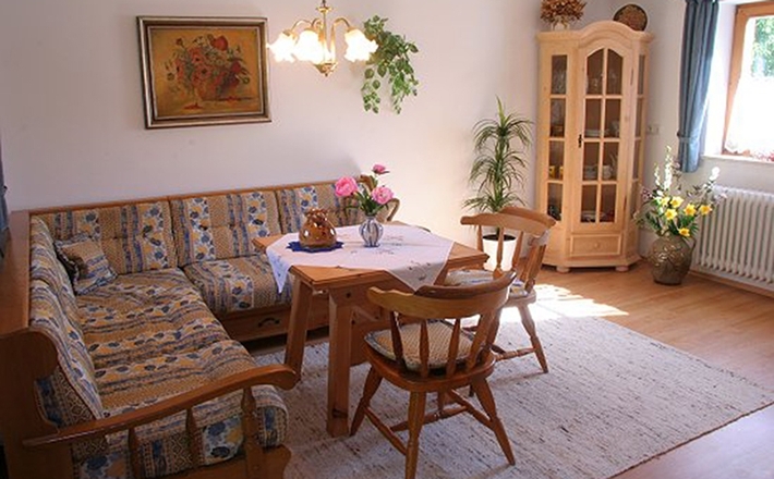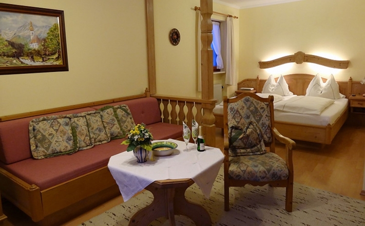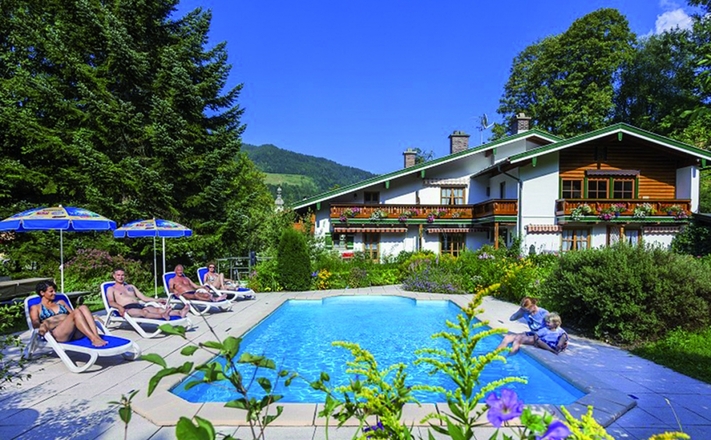 Unser Haus in ruhiger, zentraler Ortslage mit herrlichem Bergblick ist der perfekte Ausgangspunkt vieler Wanderungen. Entspannen Sie auf der großen Liegewiese mit Privatpool, Sauna, Tauch- und Kneippbecken. Fitnessraum, Solarium und Infrarotkabine. FeWo mit separatem Wohn- und Schlafzimmer (Frühstücksbuffet zubuchbar), liebevoll gestaltete Gästezimmer und Studios mit Frühstücksbuffet, Balkon oder Terrasse, TV, Radio, Teilnahme am Vital-Aktiv-Programm und WLAN kostenlos. Januar - Mai Sparwochen € 165,-/7 Nächte p. P.
