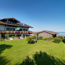 Auf einer Anhöhe über dem Chiemsee liegt das Gästehaus Stocker mit dem gemütlichen Holzhaus und dem neuen Gästehaus. Nach einem erlebnisreichen Ferientag am Chiemsee genießen Sie den weiten Blick über den See vom Balkon einer unserer modern ausgestatteten Ferienwohnungen, oder Sie lassen den Tag beim Grillen ausklingen