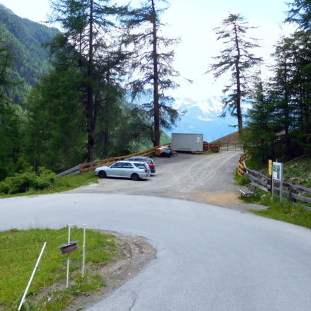 Parkplatz am Ortsende von Gries oder in der ersten Kehre nach dem Abzweig richtung Winnebach (Hüttenparkplatz).