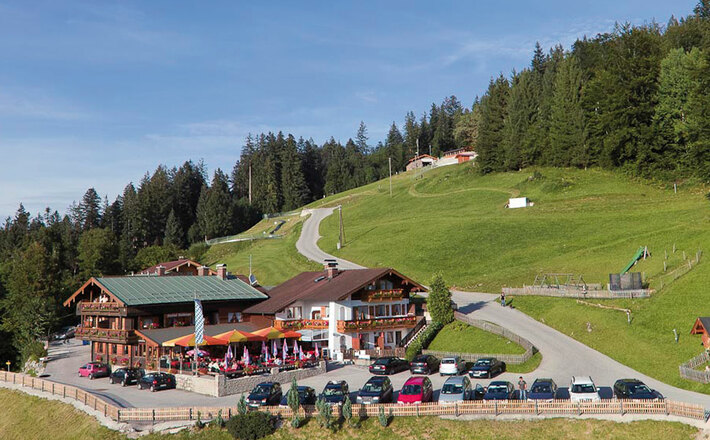 Ruhige Lage, herrlicher Blick auf das Berchtesgadener Tal. Sonnenterrasse, gut bürgerliche Küche. Kinderspielplatz und Sommerrodelbahn für die kleinen Gäste. Es werden auch Gästezimmer angeboten.