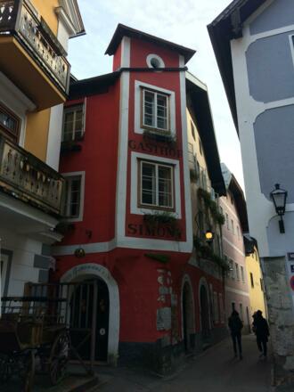 Das Gasthof Simony befindet sich mitten im Ortszentrum von Hallstatt , neben dem Marktplatz .