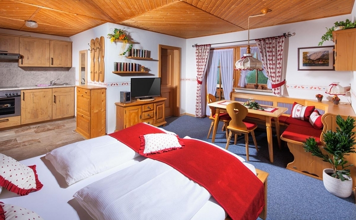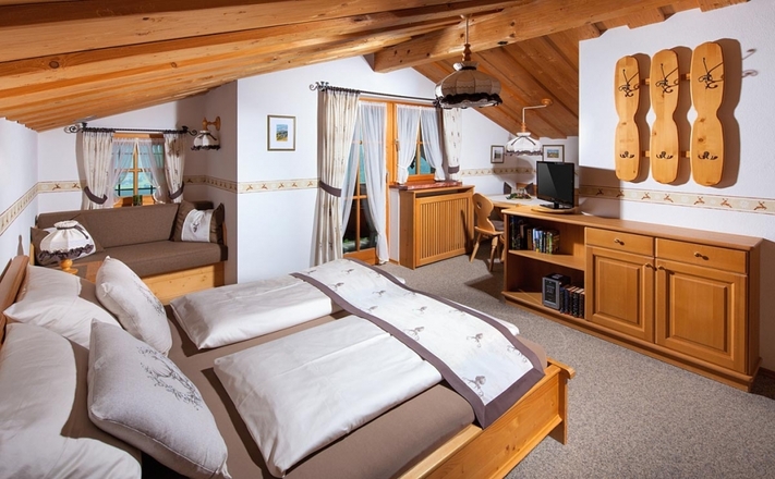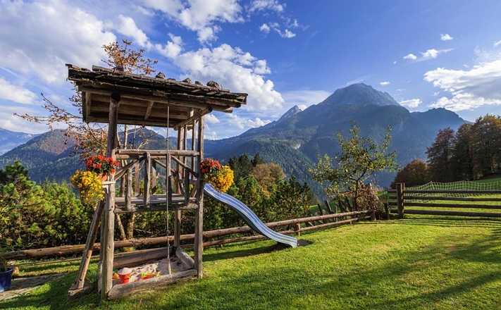 Exponierter Aussichtspunkt. 100 m unter Berchtesgadens schönstem Spazierweg, dem Soleleitungsweg, liegt unser sehr familienfreundlich geführtes Haus. Schöner Spielplatz. Kinderbett, Hochstuhl und Rückentrage können ausgeliehen werden.