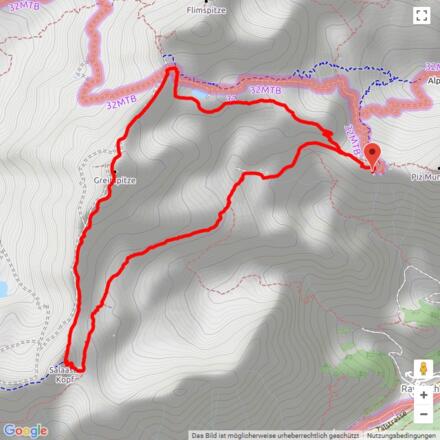 Vom Alp Trider Sattel aus geht es dem Pfad entlang zum Viderjoch und dann entlang dem Grenzgrat zu Österreich weiter hinauf bis zum Greitspitz. Am höchsten Punkt des Skigebiets hat man eine tolle Aussicht auf die Tiroler Alpen. Ein kurzer Ausflug zum Gipfelkreuz auf dem österreichischen Vorgipfel benötigt etwas Schwindelfreiheit, lohnt sich aber. Nun beginnt der gemütliche Abstieg über den Grenzgrat den Salaaser Kopf und dann über blühende Alpweiden zum Ravaischer Salaas und zu den Gipslöchern, welche die Gegend in eine Mondlandschaft verwandeln. Die Gipslöcher sind Dolinen; das weiche, gipshaltige Gestein wird vom Regenwasser nach und nach ausgehölt und es bilden sich die typischen Bodenabsenkungen. Über die Weiden des Planer Salaas und Hüttenbodens führt der Weg wieder zurück zum Alp Trider Sattel.