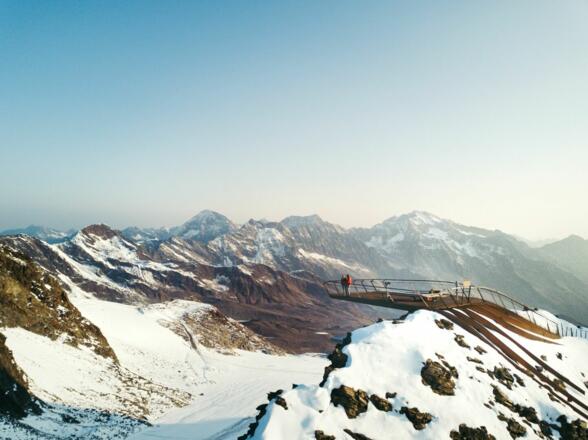 Besonderes Highlight auf dem Weg: Die Gipfelplattform TOP OF TYROL. Auf 3.210 Metern Höhe ragt diese wie eine Schwertspitze waghalsige neun Meter über die Felskante hinaus. Kein Wunder, dass sie von der Zeitschrift GEO zu einer der zehn schönsten Aussichtsplattformen weltweit gekürt wurde. Zu empfehlen ist auch ein kurzer Abstecher zur Kapelle Schaufeljoch am Fuße der Schaufelspitze.