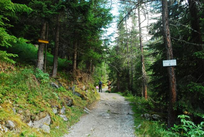 Fahren Sie mit dem Auto bis zum letzten Parkplatz vor dem Hüttendorf. Dann gehen Sie Richtung Hüttendorf und folgen den Almweg bis zur Landwirseehütte. Der höchste Berg der Niedrigen Tauern, der "Hochgolling" blickt auf die beiden Bergseen. Der Rückweg erfolgt am selben Weg.