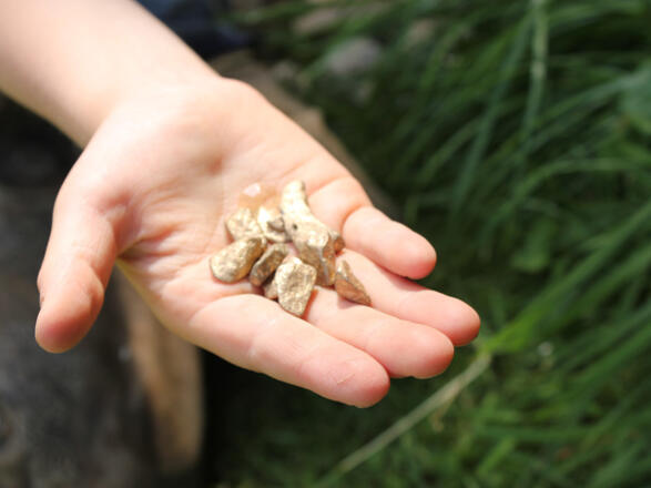 Ist man bei seiner "Goldsuche" erfolgreich, so sollten die Kinder ihre Schätze gut aufbewahren! Denn die "Goldstücke" können im Landhotel Waldmühle, gleich nebenan, gegen ein Eis am Stiel eingetauscht werden.
