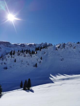 Relativ einfache und ruhige Skitour mit Blick auf die zum Teil deutlich schwierigeren Klassiker rundherum.