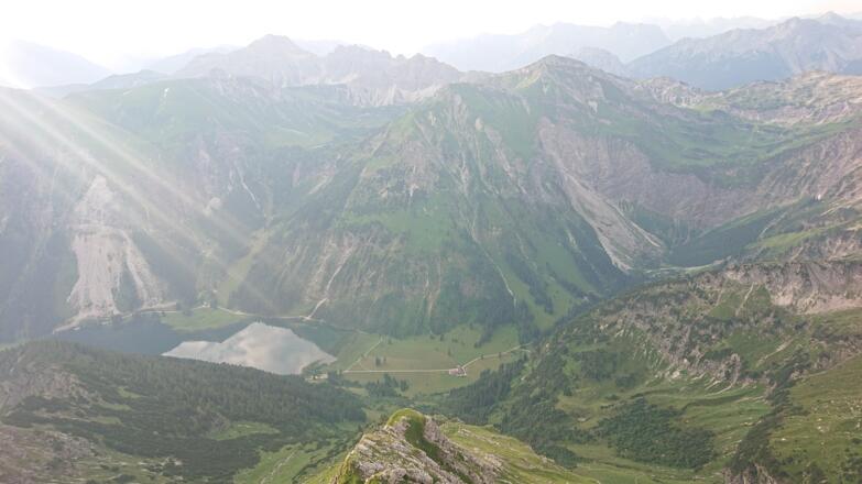 - vom Gipfel gehts hinab auf das Geißeckjoch und weiter Richtung Vilsalpe / Vilsalpsee