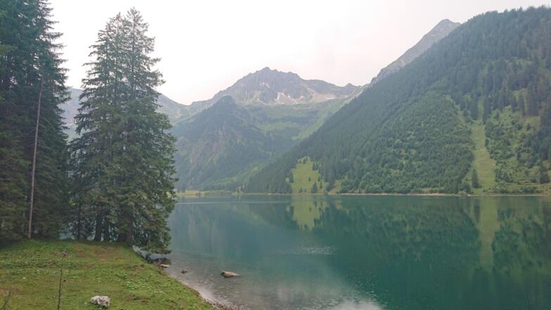 - Einmal herum um den Vilsalpsee (1185m) gehts wieder aufwärts (Weg 425) zum Traualpsee (1640m) und Obere Traualpe