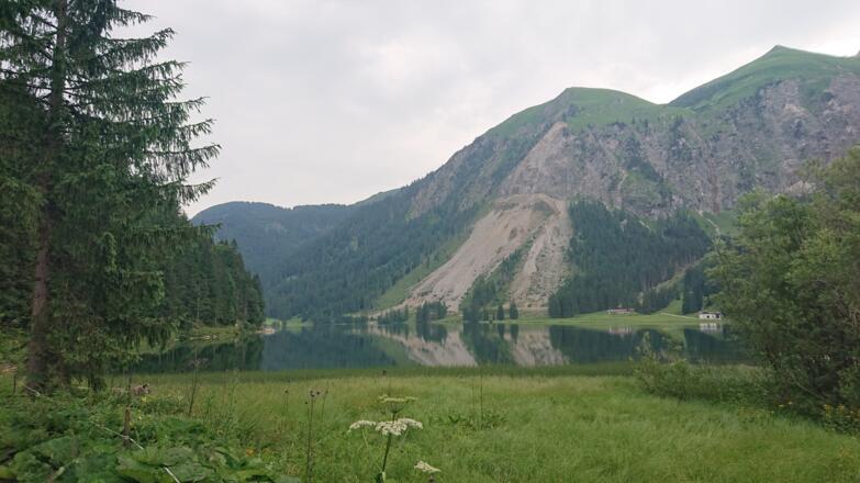 Einmal herum um den Vilsalpsee (1185m) gehts wieder aufwärts (Weg 425) zum Traualpsee (1640m) und Obere Traualpe