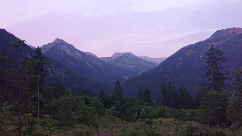 - Vom Giebelhaus (1060m) kann man den Wanderbus (letzer Bus 18:10 Uhr) nehmen oder noch 8km bis nach Hinterstein wieder hinaus laufen --> nach ca. 45km und 3500 Höhenmeter habe ich mir die Teerstraße gesparrt und bin bequem mit dem Bus zum Ausgangsort nach Hinterstein zurückgefahren