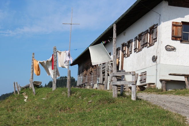 Der Weg: Von der Ortsmitte startet man in Richtung Riedbergpass bis zum Bauernhof „Bim schwarza Stürar“. Hier links bergauf den Weg vorbei an der Alten Eibe über die Alpe Oberbalderschwang bis zum Ende des asphaltierten Alpweges. An der dem alten Baum sollte man jedoch nicht zu schnell vorbeigehen – denn schnell könnte man eine Menge Zeit verpassen. Die Eibe strahlt wohl eine besondere Kraft aus, die schiere Kraft langer Jahrhunderte, denn anders ist es kaum zu erklären, dass sie seit dem Mittelalter von den Äxten und Sägen der Menschen verschont geblieben ist. Und das, obwohl Eibenholz wegen seiner Härte und Biegsamkeit für Waffen und Musikinstrumente sehr gefragt war. Die Balderschwanger Eibe ist je nach Interpretation (Doppelstamm oder ursprünglicher Einzelstamm) zwischen 2000 und 4000 Jahre alt und kann wohl mit Recht den Titel als „älteste Eibe Deutschlands“ beanspruchen. Von der Eibe wählt man nun entweder die Höhenwanderung und marschiert auf dem befestigten Alpweg zur Spicherhalde in Richtung Stillberg oder man entscheidet sich für die Gratwanderung. Die führt in nordöstlicher Richtung über einen Grashang am Felsaufbau des Heidenkopfes zum Eingang in eine Mulde und durch diese zum Gipfel des Heidenkopfes und in der Folge zum Gierenkopf; danach geht es hinunter in Richtung Stillberg. Die Gratwanderung erfordert Trittsicherheit und Schwindelfreiheit, sowie – selbstredend – festes, möglichst knöchelhohes Schuhwerk, aber bei gutem Wetter ist die Aussicht vom Kamm schlichtweg großartig: Sie reicht über die Nagelfluhkette im Norden bis zum Gottesackerplateau im Süden. Kurz vor der Alpe Stillberg, die von roten Blumen am Eingang verschönert wird, laufen die beiden Wege wieder zusammen und es geht der Beschilderung entlang ins Tal und über den Zeit- oder Gehweg zurück zum Ausgangspunkt.