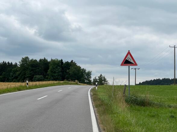 Rückfahrt über Glonn. In Großhöhenrain 12 % abwärts den Radwegschildern folgen nach Thal. Auf der Kreisstraße Richtung Antholing für einen Kilometer viel Verkehr. Vor der Steigung nach Antholing links halten Richtung Piusheim und dort links Richtung Haslach. Weiter auf der Glonnthalstraße nach Glonn. Vor Glonn links über die Brücke in den Furtmüller Weg und beim Hotel Schwaiger, links auf die Feldkirchener Straße. Ca. 300 Meter hoch, dann rechts abbiegen in die Reisenthaler Straße entlang dem Kupferbach nach Reisenthal. Nach dem Ortsschild beim Cafe Reisenthaler Hof (ist dauerhaft geschlossen) rechts abbiegen Richtung Münster. Die Steigung ca. 1 km hoch nach Münster könnte für manche Handbiker grenzwertig sein, besonders bei nasser Straße. (Bei mir hat das Vorderrad durchgedreht).