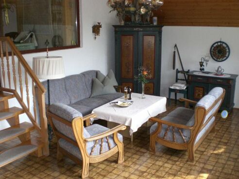 Herzlich willkommen in unserer großen Ferienwohnung "Haus Alpenblick" für 5 Personen mit Studiofenster. Eigener Eingang, sonnige Ortsrandlage, Liegewiese im Obstgarten. Kinder bis 12 Jahre erhalten einen Nachlass.