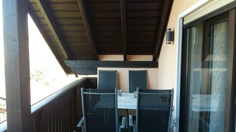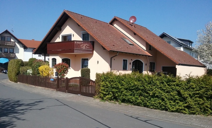Unsere gemütliche, gepflegte Ferienwohnung in ruhiger Wohnlage ist direkt am Radweg gelegen und daher der perfekte Ausgangspunkt für Rad- und Wandertouren. Sehr geräumiges Wohn- und Esszimmer mit TV/ Radio, Schlafsofa und Balkon mit Gartenmöbeln und Blick ins Grüne. Großes, helles Schlafzimmer mit Doppelbett (evtl. zusätzliches Einzelbett). Vollständig ausgestattete Wohnküche. Bad mit mit Dusche und Badewanne, Fön.