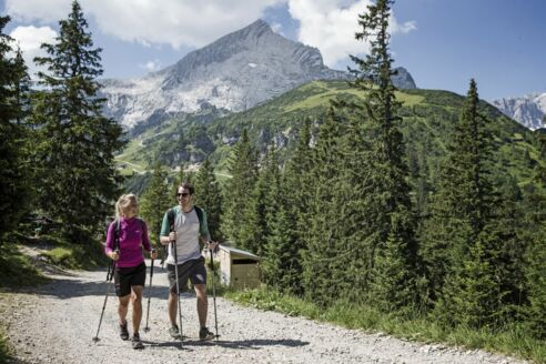 Hier, wo schon zu Beginn des letzten Jahrhunderts die Münchner Gesellschaft Erholung und Ruhe suchte, wanderst Du auf schönen, panoramareichen Wegen bis auf das Kreuzeck. Genieße vor dem Abstieg in einem Liegestuhl vor dem Kreuzeckhaus ganz wie die damaligen „Sommerfrischler“ eine Erfrischung und den traumhaften Blick auf das berühmte Bergpanorama mit Alpspitze und Wettersteingebirge.