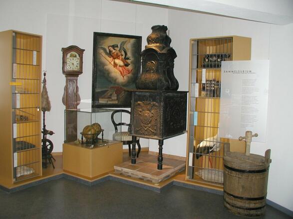 Das begehbare Depot präsentiert ein "Sammelsurium" aus Hausrat, Möbel (bemalte Schränke, Schreinerei und Büttnerei) und Kleidung aus der Region (inkl. Kopfbedeckungen). Die umfangreiche Museumssammlung bietet immer wieder überraschende Objekte.