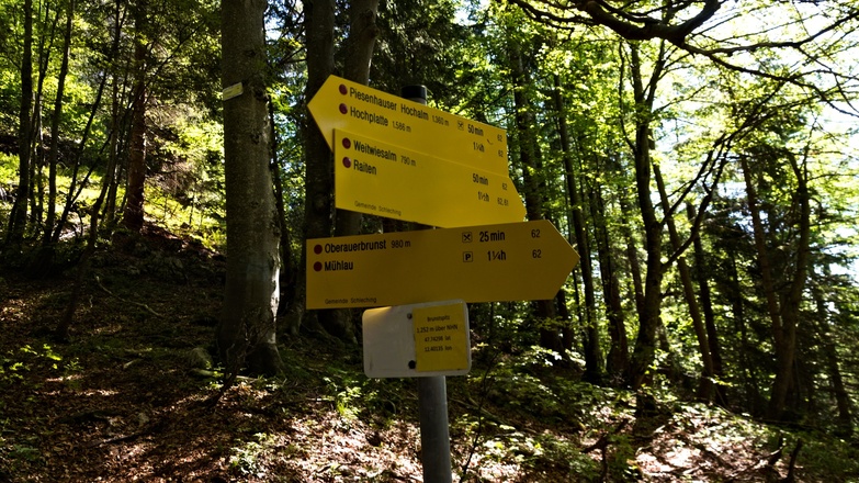 Autobahn München Salzburg Abfahrt 109 Grabenstätt runter und in Richtung Reit im Winkel weiter in südliche Richtung. Nach Marquartstein links in Richtung Schleching B 307. Kurz vor Schleching rechts auf die Kampenwandstraße nach Mühlau. Im Ort wieder rechts in die Dalsenstr. an der Kapelle vorbei bis zum Ende der Straße hier Parkplatz.
