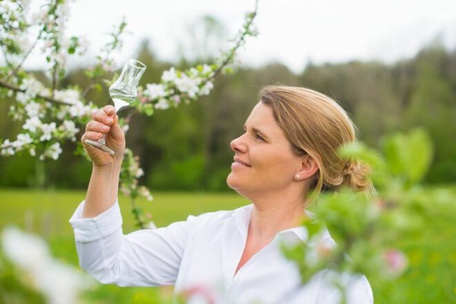 FeinsteDestillate, Liköre und auch der Simssee Gin werden in sorgfältigster Handarbeitvon der Brennerin und Edelbrandsommeliere Katharina Singer hergestellt.