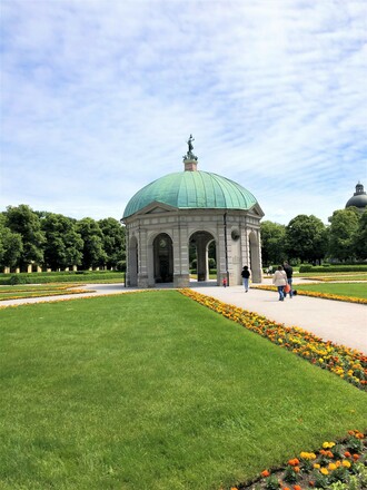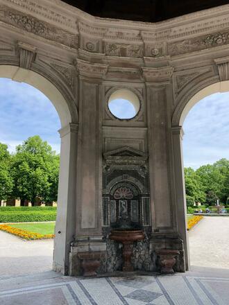 Der wunderschöne Park wurde 1613 unter Herzog Maximilian dem I. erschaffen. Der rechteckige Park besticht durch seine blühenden Grünflächen zwischen den acht symmetrischen Wegen, die hin zum wunderschönen Pavillon führen. Oben auf eben diesem thront eine Kopie der Bronzestatue Tellus Bavarica, welche für die Reichtümer Bayerns steht, nämlich Getreide, Wasser, Wild und Salz.