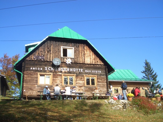 Folgt man dem Kamm zurück nach Ost dann ist von hier aus die Anton Schosser Hütte (1.158 m) in ca. 20 Minuten erreicht.