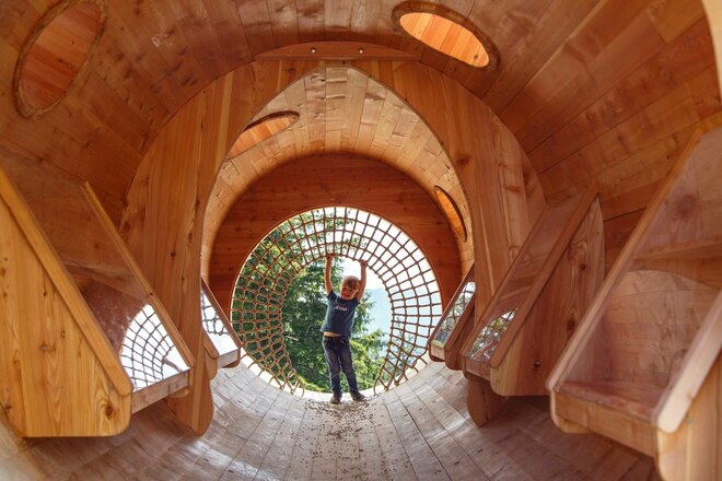 Der Holzgeisterweg setzt sich mit dem Thema spielerisch auseinander. Ein Baumstamm, in den man hineingehen kann, ist nur eine von sieben Stationen auf dem Weg. Wozu braucht es totes Holz? Warum ist es so wichtig und für wen? Warum ist ein Bergwald der beste Lawinenschutz und welchen Gefahren ist er selbst ausgesetzt? Auf Bildern und Schautafeln werden Zusammenhänge anschaulich erklärt.