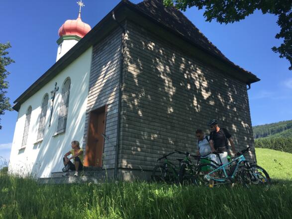 Abwechslungsreiche Tageswanderung auf den südlich des Hotels Hanusel Hof gelegenen Hauchenberg mit kulturellem Highlight, die Lohweg Grotte und die St. Rochus Kapelle in Waltrams sowie den "Alpkönigblick", Aussichtsturm auf dem Hauchenberg.